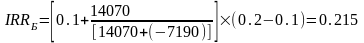 IRR = r1 + {f (r1) : [f (r1) - f (r2 )]}(r2 - r1),