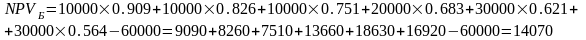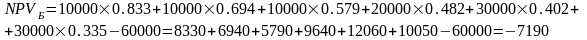 Для проекта Б, рассчитаем NPV при норме доходности 20 %.