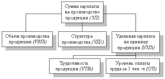 Рис.13. Схема факторной системы зарплаты на производство продукции
