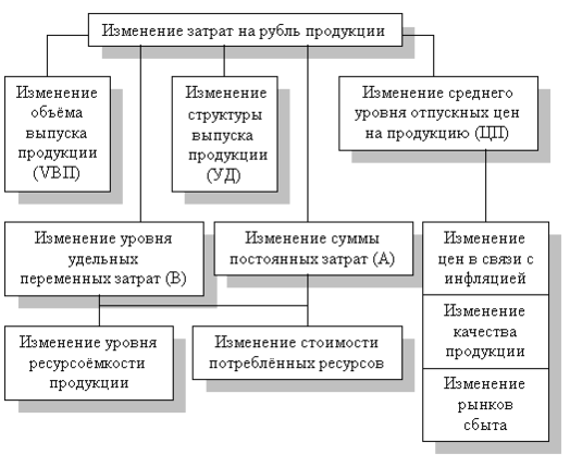 Рис.1. Взаимосвязь факторов, определяющих уровень затрат на рубль товарной продукции