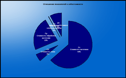 Данный рисунок отражает долю основных затрат в структуре себестоимости продукции ООО "Техсервис". Из диаграммы видно, что в структуре себестоимости основную часть затрат составляет стоимость заготовок, значительную часть затрат составляет стоимость обработки заготовки.