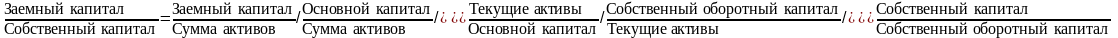 Величина коэффициента финансового риска (плеча финансового рычага) зависит от доли заемного капитала в общей сумме активов, доли основного капитала в общей сумме активов, соотношения оборотного и основного капитала, доли собственного оборотного капитала в формировании текущих активов, а также от доли собственного оборотного капитала в общей сумме собственного капитала: