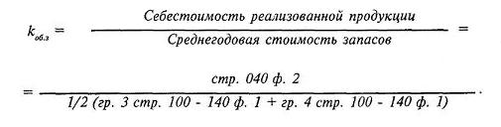 Коэффициент показывает, сколько оборотов за год совершили запасы, т. е. сколько раз они перенесли свою стоимость на готовые изделия.