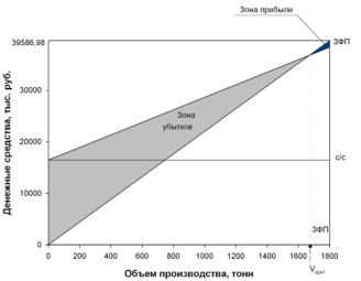 При плановом же объеме (1800 тонн) производства запас финансовой прочности (то есть, количество продукции, выпускаемое с прибылью), составляет 58,2 тонн (или 1257 тыс. руб.).