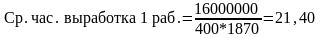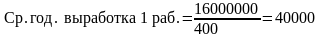 Объем реализации продукции по предприятию за год равен 16 000 тыс. руб. Среднесписочная численность работающих – 400 чел., средняя продолжительность рабочего дня – 8 часов. За год каждый рабочий предприятия отрабатывает в среднем 1 870 часов.