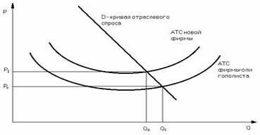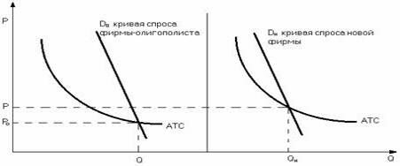 Они установят цену ниже Рн, но в силу экономии от масштабов производства и в этом случае (между Рн и Ро) будут получать прибыль. Новая же фирма понесет значительные потери и вынуждена будет уйти с рынка (при ценах ниже Рн кривая спроса Dн лежит ниже АТС, и, следовательно, новая фирма не может покрыть своих издержек).
