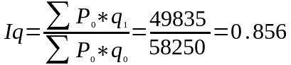 Физический объем проданных товаров в отчетном периоде по сравнению с базисным снизился на 14,4%.