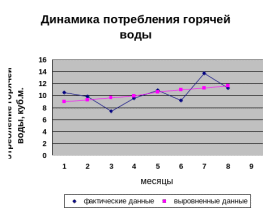 Рисунок 3. Динамика ряда потребления горячей воды с фактическими и выровненными данными