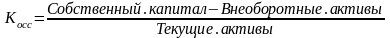 где Косс - коэффициент обеспеченности собственными средствами, должен быть > 0,1