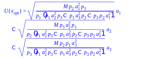 где - величина обратная предельной полезности денежной единицы, то есть равна 1/. Если заменить в (2) на 1/ и возвести уравнение в степень 1, то получим знакомое нам условие оптимума потребителя, совпадающее с (4).