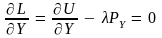 Теперь мы минимизируем I = PXX + PYY при ограничении U (X, Y) =