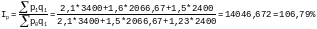 Вывод: цены в отчетном периоде увеличились на 6,79% по сравнению с базисным периодом, а товарооборот увеличился на 17,11%. Абсолютная сумма переплаты денежных средств покупателей от роста цен составляет 2052,679 тыс. руб.