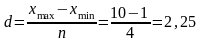 Число групп задано, поэтому интервал рассчитаем по формуле: