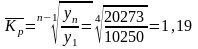 =119-100 = 19%, то есть ежегодно уровни ряда возрастали в среднем на 19%.