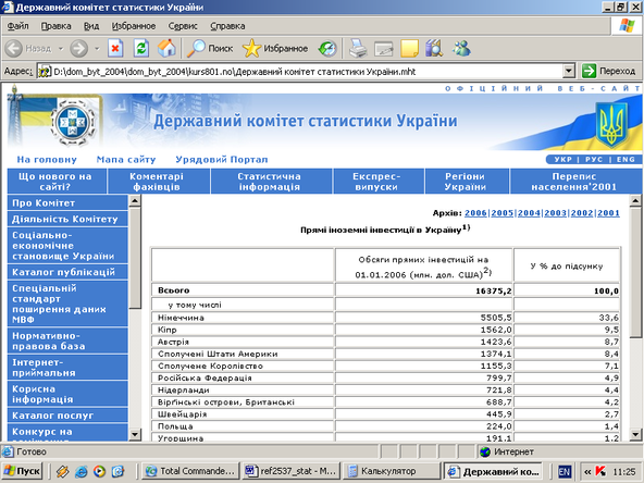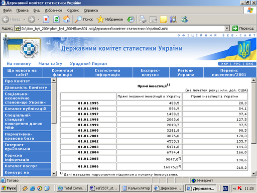 Рис.2.2. Інформація по іноземним інвестиціям з офіційного сайту Держкомстату України