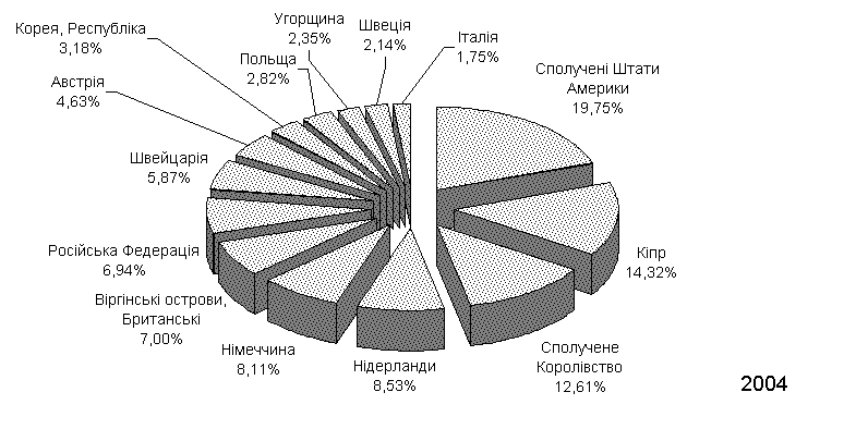 Рис.3.5 Структурні частки країн світу – найбільших інвесторів в України станом на 01.01.2004 року
