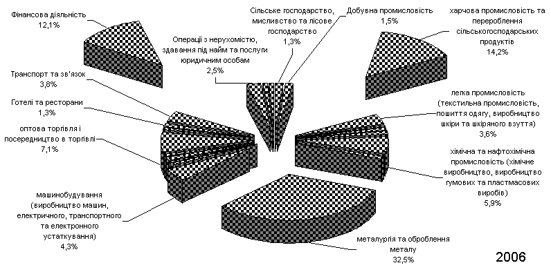 1. Металургія та обробка металів –32,5% (з врахуванням інвестицій «Mittal Steel AG», Німмеччина в придбання у 2005 році “Криворіжсталі”);