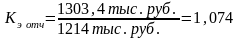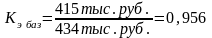 Кэ = 415 тыс. руб. / 1272 тыс. руб. = 0,326