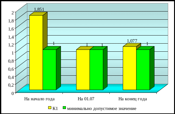 Рисунок 2. Коэффициент текущей ликвидности, К1
