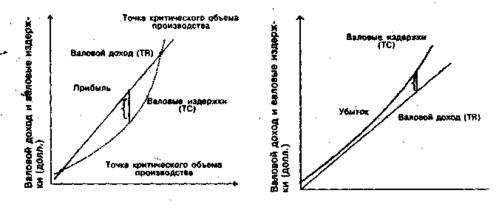 Из рис. 1 б) видно, что фирма будет минимизировать свои убытки, когда валовые издержки (ТС) превышают валовой доход (TR).