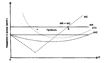 Рис. 2. Максимизация прибыли в краткосрочном периоде в условиях чистой конкуренция при сравнении предельного дохода (MR) и предельных издержек (МС)