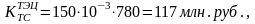 Принимаем для варианта с ТЭЦ – 150 тыс. руб./Гкал/ч;