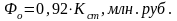 Фо – стоимость основных фондов, рассчитывается как стоимость строительства за вычетом возвратных сумм, которые снимаются с баланса энергетического объекта после окончания строительства и составляют 8% от капитальных затрат на сооружение, т.е.
