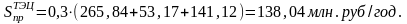 Прочие расходы. Эта статья объединяет все остальные расходы (покупка воды и материалов, оплата услуг вспомогательных производств, общестанционные расходы и пр.). Поскольку эти расходы зависят от мощности электростанции и численности персонала, в приближенных расчетах их можно принять равными 30% от суммарных затрат на амортизацию, ремонт и заработную плату, т.е.: