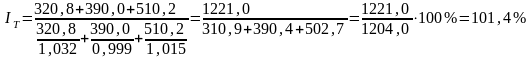 Индекс физического объема проданных товаров, используя взаимосвязь указанных индексов