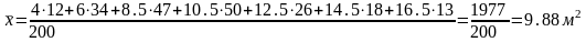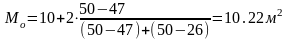 В данном случае это интервал от 10 до 11 м2.