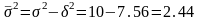 По правилу сложения дисперсий определим среднюю из групповых дисперсий: