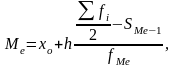 - частота, накопленная до медианного интервала,