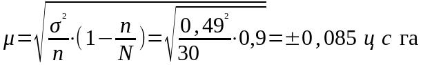 Определим ошибку средней урожайности по участкам, попавшим в выборку: