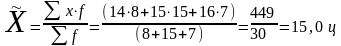 Определим по этим данным среднюю урожайность, дисперсию урожайности и долю участков с урожайностью в 15 и более ц с га для генеральной и для выборочной совокупности.