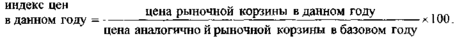 Индекс цен является измерителем соотношения между совокупной ценой набора товаров ("рыночной корзины") для данного временного периода и совокупной ценой "корзины" в базовом году:
