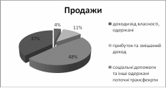 З рисунку 5.1 можна сказати що 100% доходів населення найбільшу частку займають соціальні допомоги та інші одержані поточні трансферти вони становлять – 48% , також значну частину доходів населення становить заробітна плата вона займає – 37%, та прибуток та змішаний доход він становить – 11%, найменшу частину доходу займає доход від власності він становить – 4% від загальної частини.