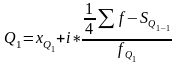 Определим место нижней квартили: NQ1 = (50+1) /4 = 12.75.