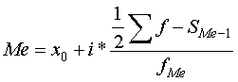 Рассчитаем значение медианы. Середина ряда: 25. Медианным является интервал с накопленной частой 33. Точное значение медианы определим по формуле: