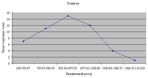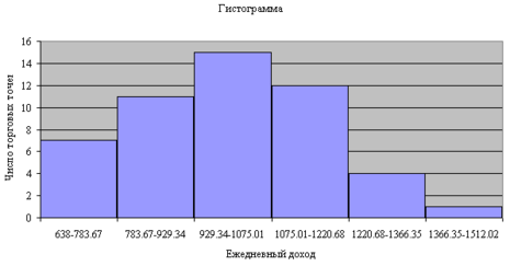 | Группы торговых точек по объему ежедневного дохода | Число торговых точек | Середина интервала |
