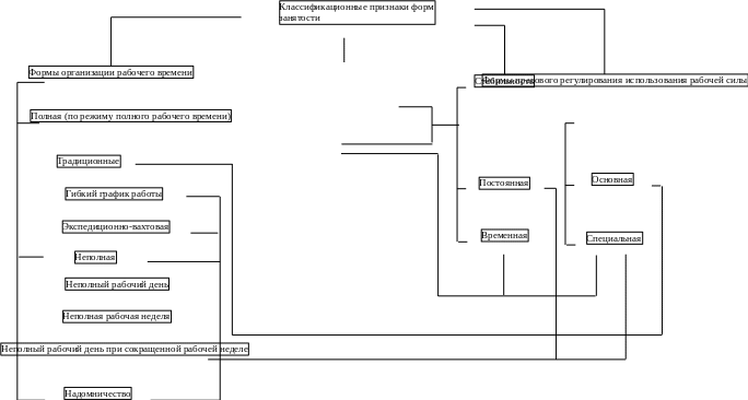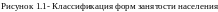 Каждый вид занятости реализуется с помощью организационно–правовых способов и условий использования рабочей силы, характеризующих формы занятости, которые классифицируются с учетом признаков, представленных на рисунке 1.1