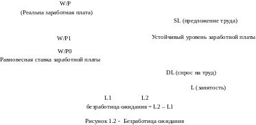 2) Устойчивость (жесткость) заработной платы порождает "безработицу ожидания". Безработица ожидания возникает в результате превышения уровня реальной заработной платы над ее равновесным значением (см. рис. 4.4.).