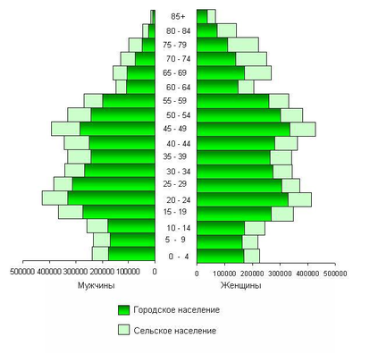 Снижение рождаемости обусловило изменение в возрастной структуре населения. Число детей в возрасте до 14 лет уменьшилось с 2252,5 тыс.чел. на начало 1995 г. до 1595,5 тыс.чел. к началу 2009 г., а их удельный вес в общей численности населения снизился соответственно с 22,1 до 16,2 %. Число лиц в возрасте 70 лет и старше увеличилось соответственно с 731,1 до 924,2 тыс. чел., а удельный вес этой категории населения возрос с 7,3 до 9,4 %.