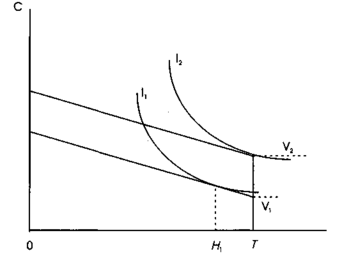 На рис. 1.8а изображена ситуация, когда работнику А выгоднее не работать вообще, чем работать строго определенное количество часов H1, IA0>IA1. На рис. 1.86 отражена ситуация, когда работнику В выгоднее работать строго определенное количество часов H1, чем не работать вообще, IB0>IB1. В то же время работник В может улучшить свое положение, если ему будет предоставлена возможность выбирать удобное для него количество часов работы.