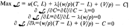 Решение о предложении труда, максимизирующее индивидуальную функцию полезности, может быть получено с помощью максимизации функции Лагранжа: