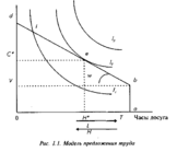 Графически функция полезности может быть представлена семейством кривых безразличия (I1, I2, I3 на рис. 1.1) в пространстве блага-досуг.
