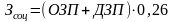 Затраты на социальные нужды принимаются в размере 26 % от суммы основной и дополнительной зарплаты производственных рабочих.