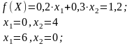 Решение. Данная задача оптимизации является задачей линейного программирования. Обозначим виды кормов через х1 и х2. Целевой функцией задачи является общая стоимость кормов, затраченных на кормление животных, которая должна быть наименьшей. Число ограничений задачи равно числу питательных веществ, входящих в состав кормов - 2. Дополнительно вводится условие неотрицательности переменных. Зная цены кормов, содержание питательных веществ в них можно сформулировать математическую модель задачи линейного программирования: