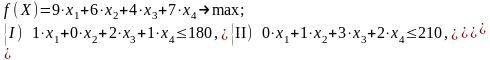 Зная цены изделий, нормы их расхода и запасы ресурсов, формулируем математическую модель исходной задачи линейного программирования: