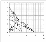 Решение данной задачи линейного программирования на максимум лишено экономического смысла, так как затраты на корм стремятся уменьшить. Однако математически эта задача имеет решение и на максимум: наибольшее значение в области допустимых решений целевая функция принимает в точке (0; 6), и это значение равно