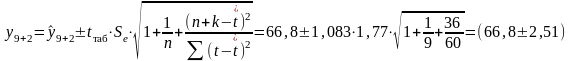 С вероятностью 70 % фактическое значение спроса на кредитные ресурсы будет находиться в интервале от 64,29 до 69,31 млн. руб.